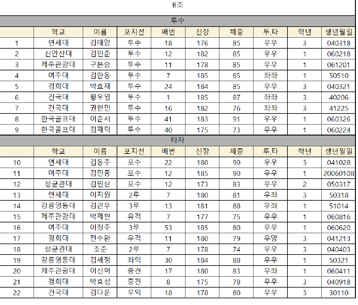 ‘2025 KBO AMATEUR BASEBALL WEEK’ 경기일정 - 대학야구 스페셜매치 (팀별 선수명단)